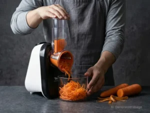 1. 테팔 전동 채칼 프레시 익스프레스를 사용해 당근을 면처럼 얇게 채 썰어줍니다.