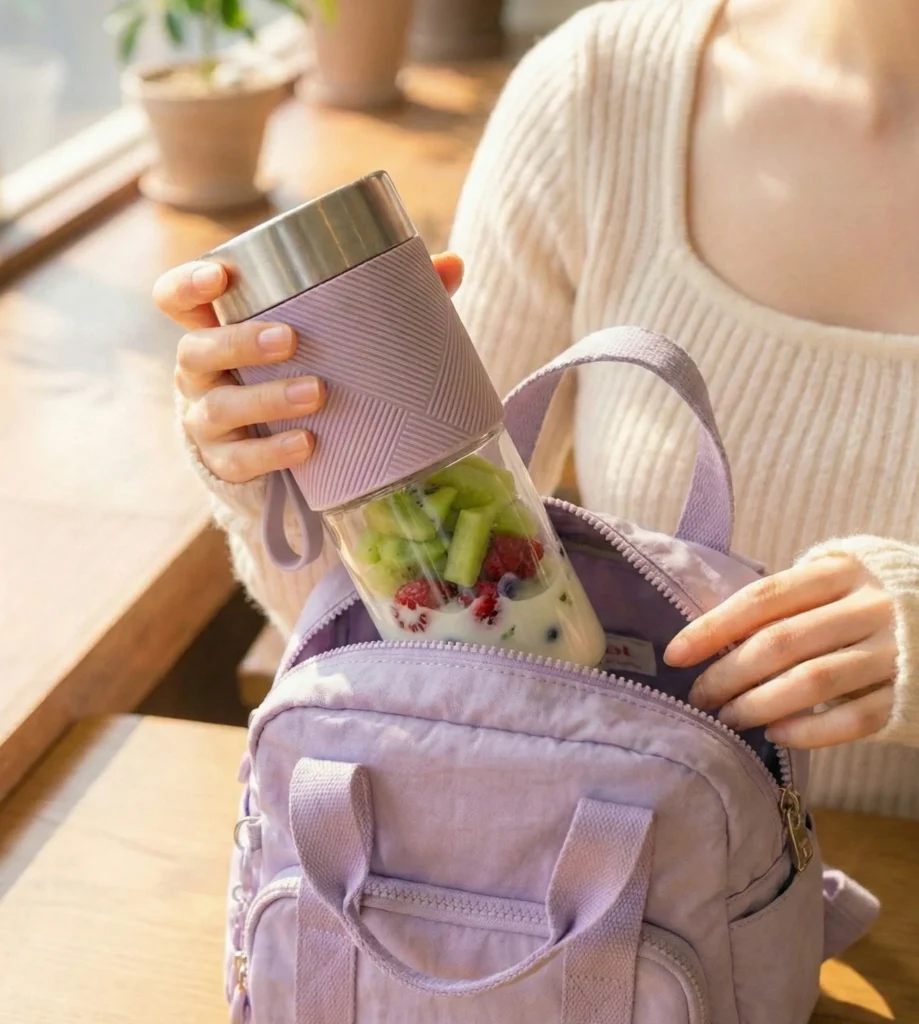 510g의 가벼운 무게와 300ml의 휴대하기 좋은 사이즈로 가방에 넣어 다니기 부담이 없고, 과일이나 견과류, 프로틴 파우더를 미리 담아두었다가 우유나 물만 부어 바로 갈아 마시면 끝입니다. 별도의 준비 과정 없이 버튼 한 번으로 완성되는 간편함 덕분에 출근길은 물론, 운동 후나 이동 중에도 편하게 활용할 수 있습니다.