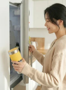 3. 모든 재료를 휴대용 무선 믹서기 라이트믹스에 넣고 부드럽게 갈아줍니다.