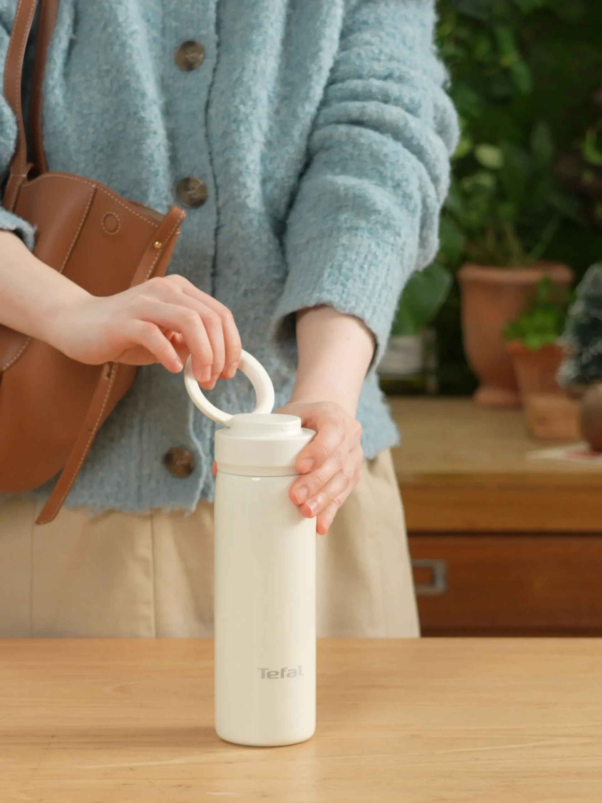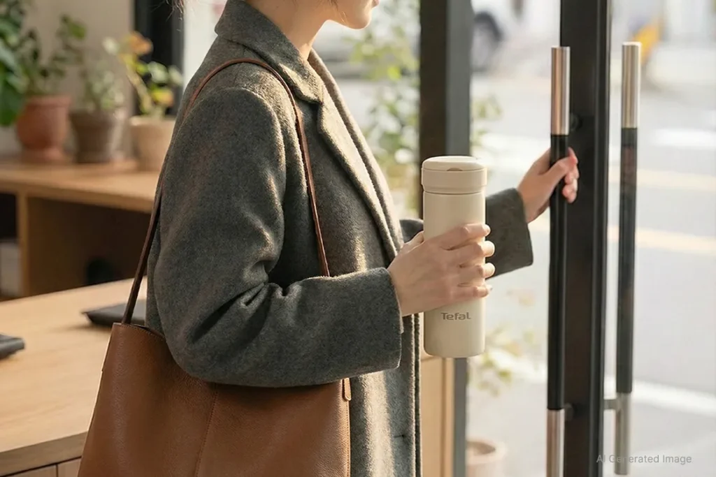 출근길에 가방, 휴대폰, 텀블러까지 들고 이동하다 불편했던 경험 있으시죠. 잠깐 내려놓기도 애매하고, 계속 손에 들고 있자니 번거로운 순간도 생깁니다. 텀블러를 자주 휴대할수록 ‘이동 중 사용성’은 더욱 중요한 요소가 됩니다. 테팔 이지 오픈 루프 텀블러는 뚜껑에 루프 형태의 손잡이를 적용해 손가락에 가볍게 걸어 들고 이동할 수 있어 휴대가 편리합니다. 또한 바닥면에는 실리콘 베이스가 적용되어 책상이나 테이블 위에서도 미끄러짐 없이 안정적으로 사용할 수 있습니다.